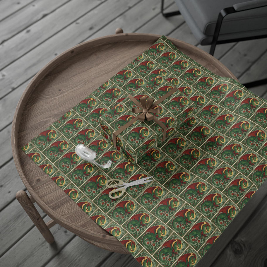 Dragon Christmas Wrapping Paper, Art Nouveau Emerald, Paper Wraps, Dragon Gift