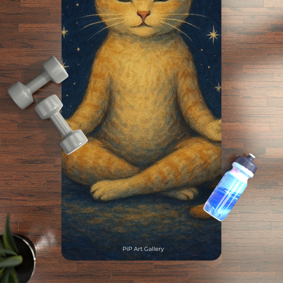 Yoga Mat, Meditative Cat, Rubber Yoga Mat